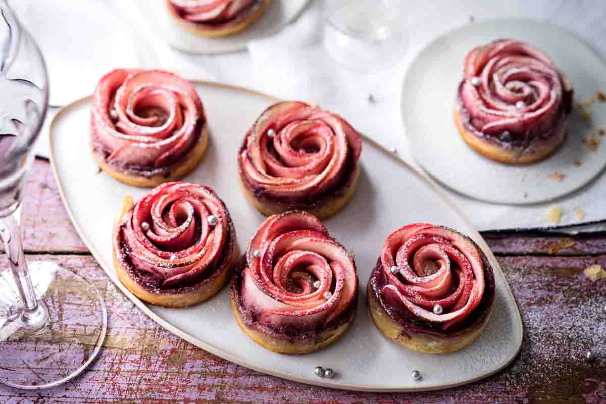 - Disfrute de las rosas hojaldradas con manzanas Gala, calientes o frías. ¡Buen provecho!